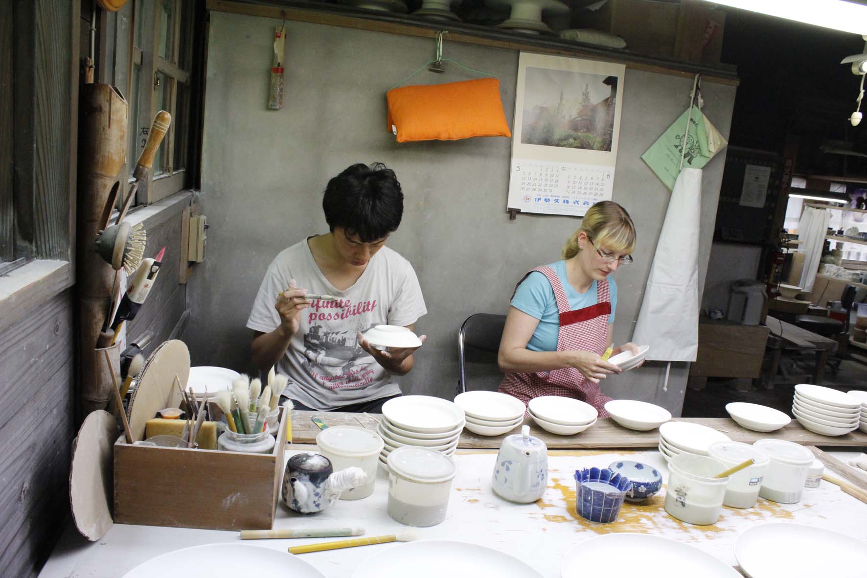 Two weeks ago I got the opportunity to do an one-day internship at one of Arita`s most traditional kilns, “Gen-emon kiln”. It was very interesting for me to not only see how the different pieces of porcelain were carefully being made one by one (starting from forming it on the potter’s wheel, up to painting it), but to also be able to experience it at first hand.