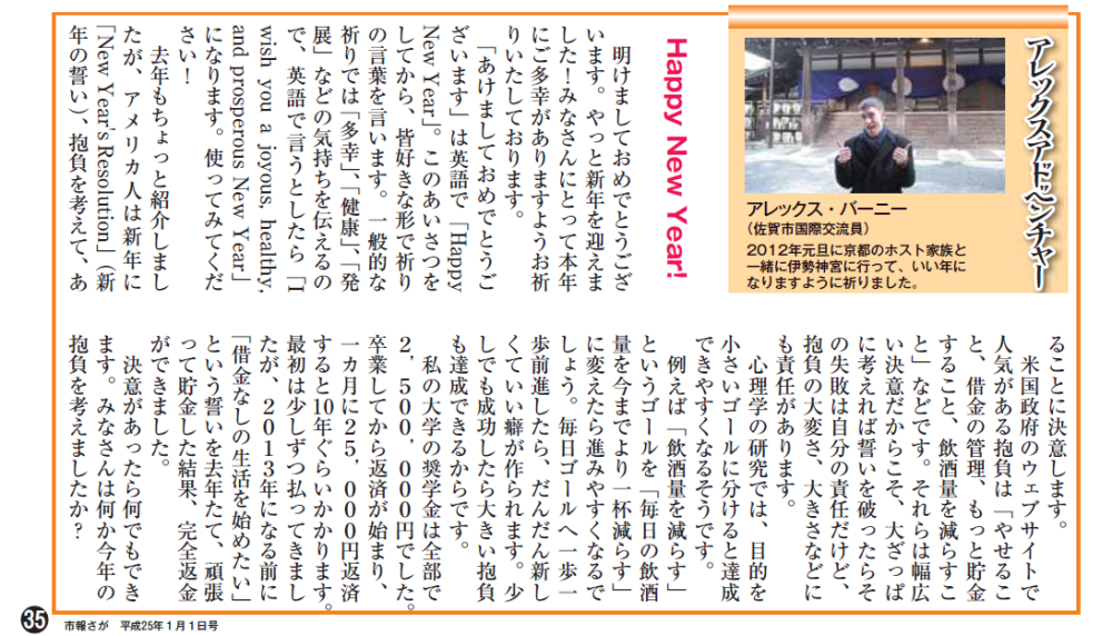 1 Published February 3, 2015 at 1000 × 572 in 2013 Saga City Newsletter Articles – 2013年市報さがの記事 Next → 1月1日号ー「Happy New Year!」 Discover more from Saga JET Programme Subscribe to get the latest posts sent to your email. Type your email… Subscribe