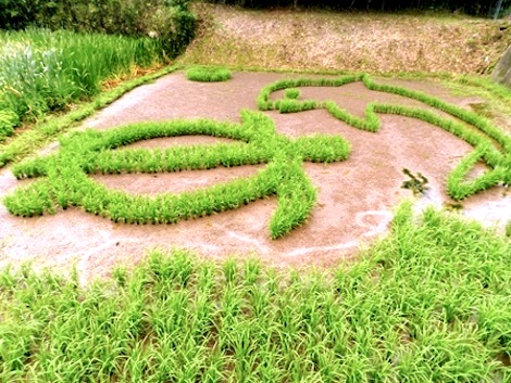 This is the fourth year that the rice field about 100 meters from the bus stop near the Route 47 intersection near Nagoya town has been transformed. Past rice field animals have included elephants and giraffes.