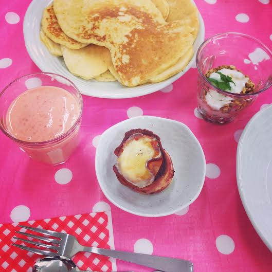 The menu consisted of egg and bacon muffin cups, granola parfait, butter milk pancakes and smoothies. All pretty basic stuff but I wanted to show that making things from scratch is actually not that much more of a hassle and not to mention more healthy.